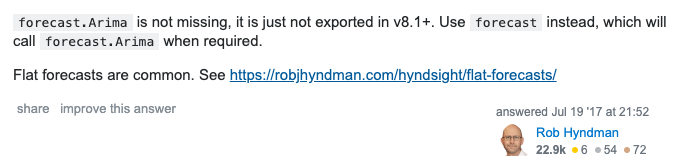 https://stackoverflow.com/questions/45193907/forecast-arima-function-missing-fromforecast-package