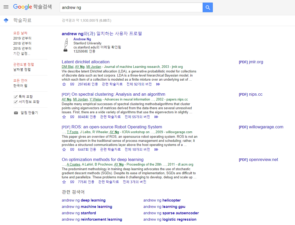 - 특정 단의의 트렌드 및 인용 등 확인 가능