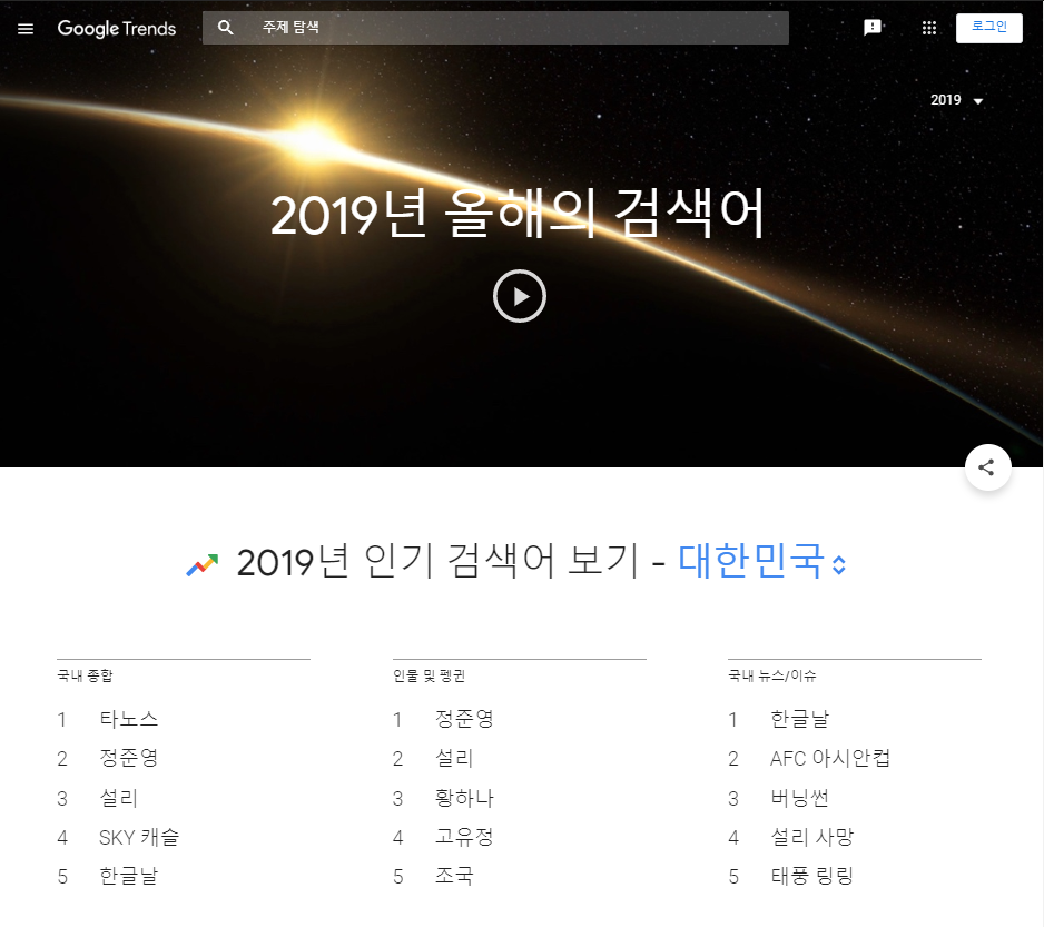 - 최신 인기 검색어, 연도별 차트, 검색 트렌드 제공