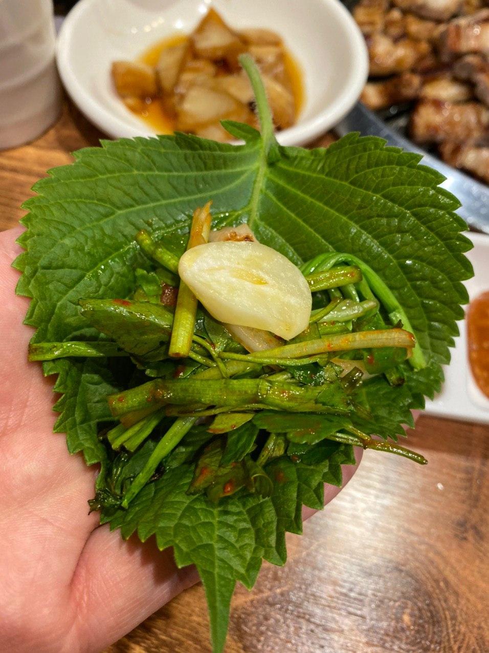 그리고 함께 나오는 생미나리무침이 너무나 맛있는 집.