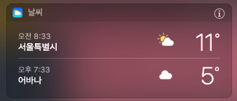 나는 맥을 주로 쓰기 때문에 사이드 바의 날씨 앱을 통해서 쓰고 있다.