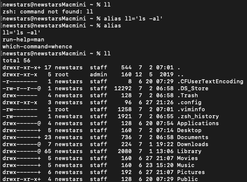 축약어를 등록하여 사용하는 방법을 리눅스에서 제공한다.