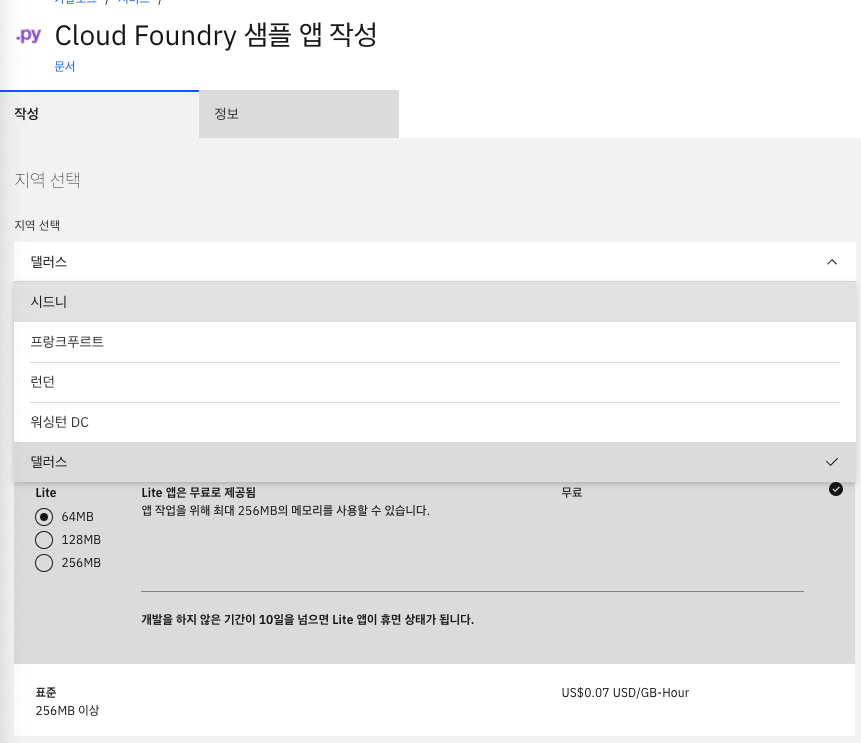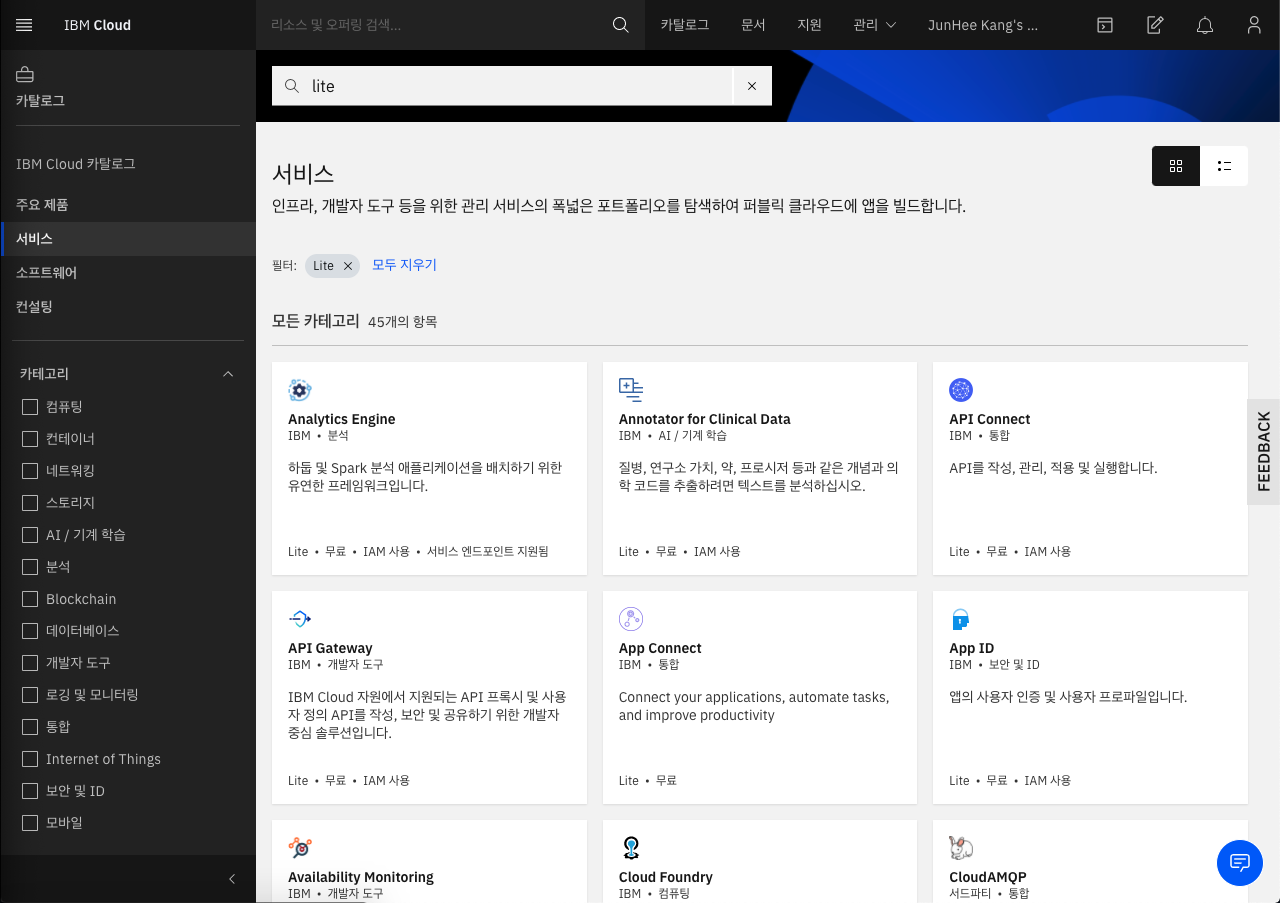 IBM 클라우드 카탈로그에서 필터를 LITE로 했을 경우에,
