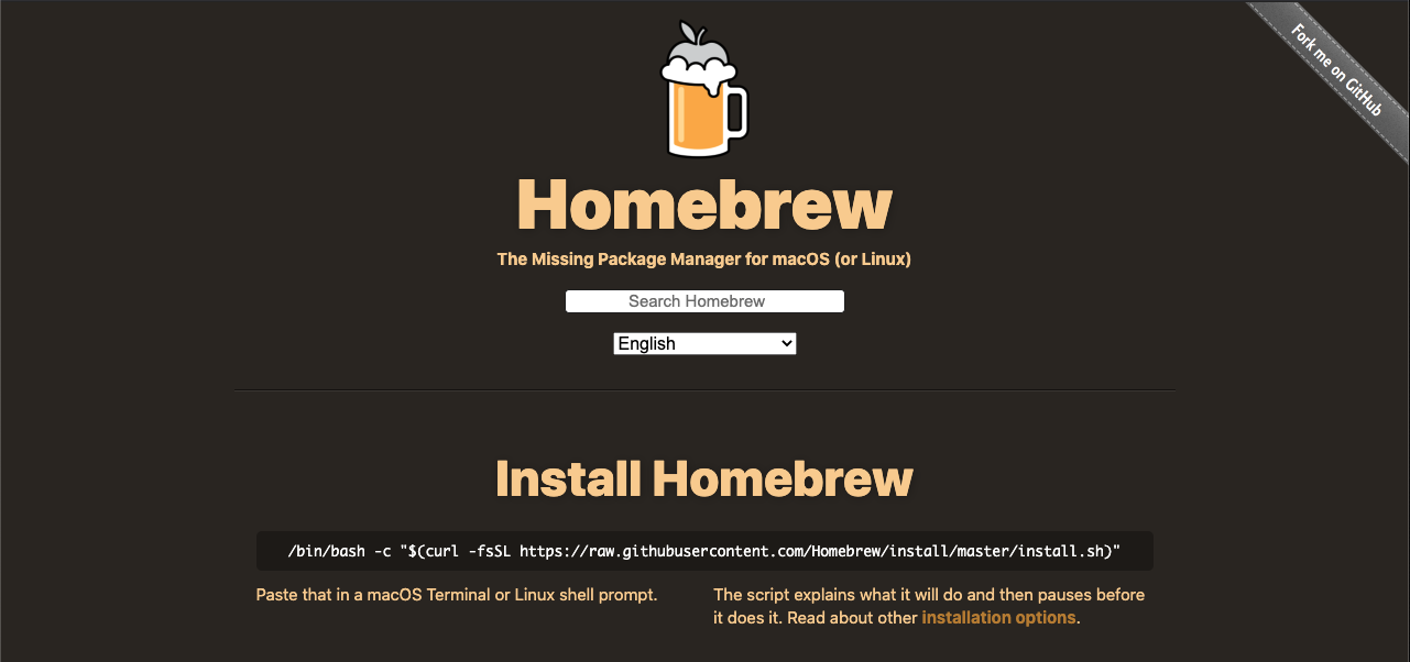 공식 웹사이트 : https://brew.sh/