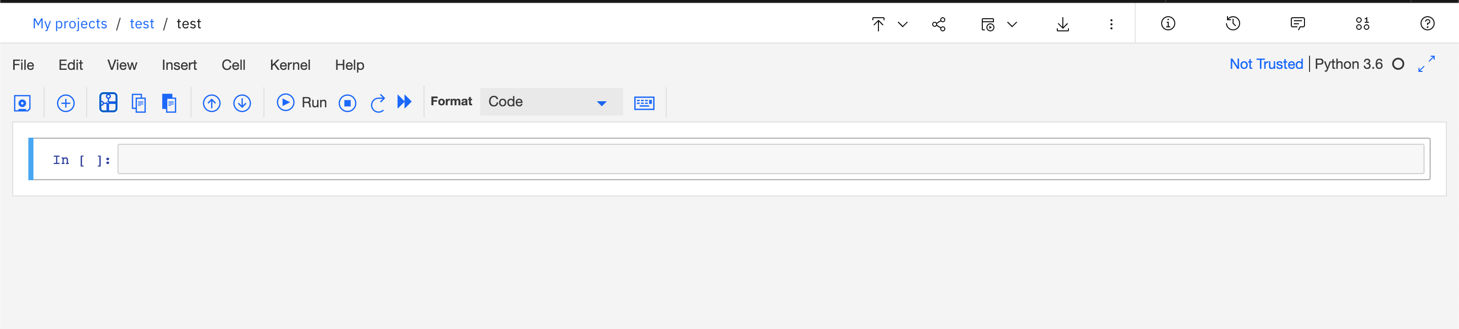 원하는 환경에 들어가서 우측상단의 New notebook 을 클릭하면 생성할 수 있다.