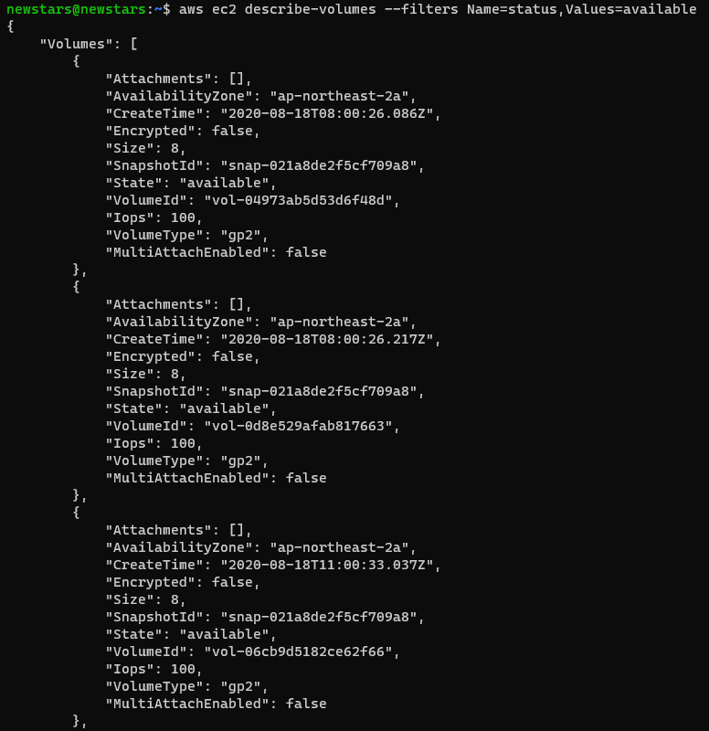 aws ec2 describe-volumes --filters Name=status,Values=available