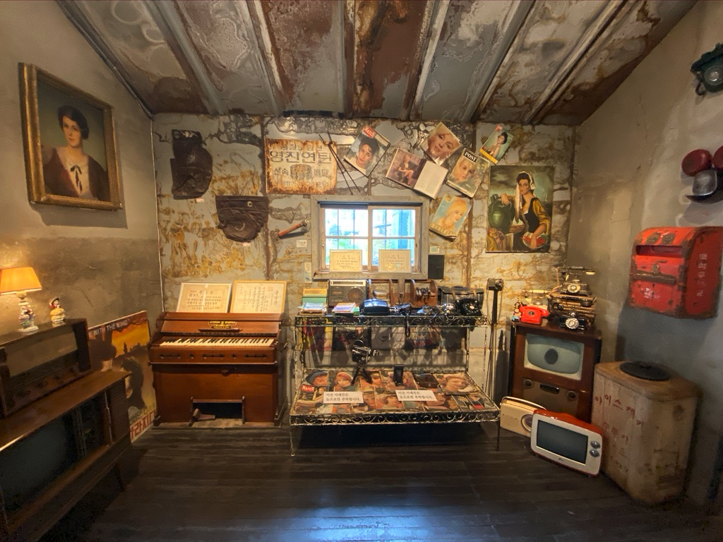 카페 입구에 이런 저런 옛날 빈티지 물건들이 있다.