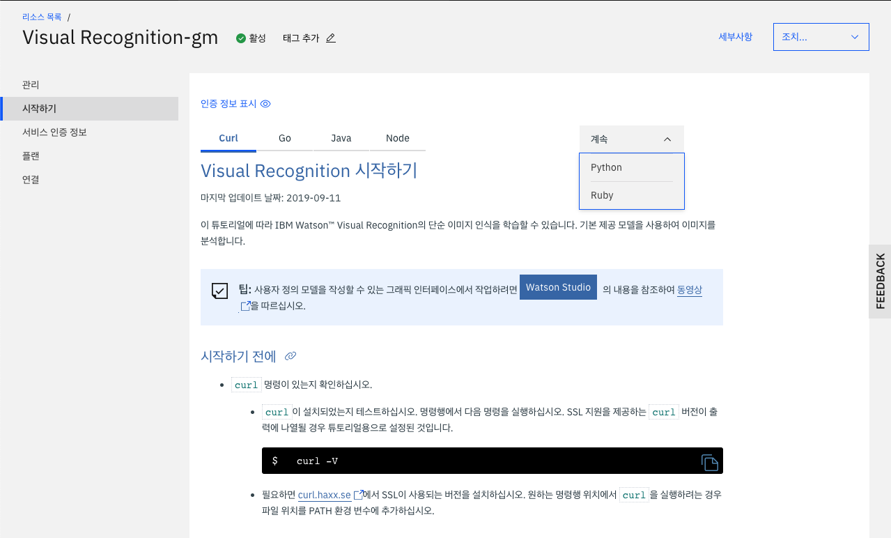 관리 메뉴에서 왓슨스튜디오를 실행해보자.