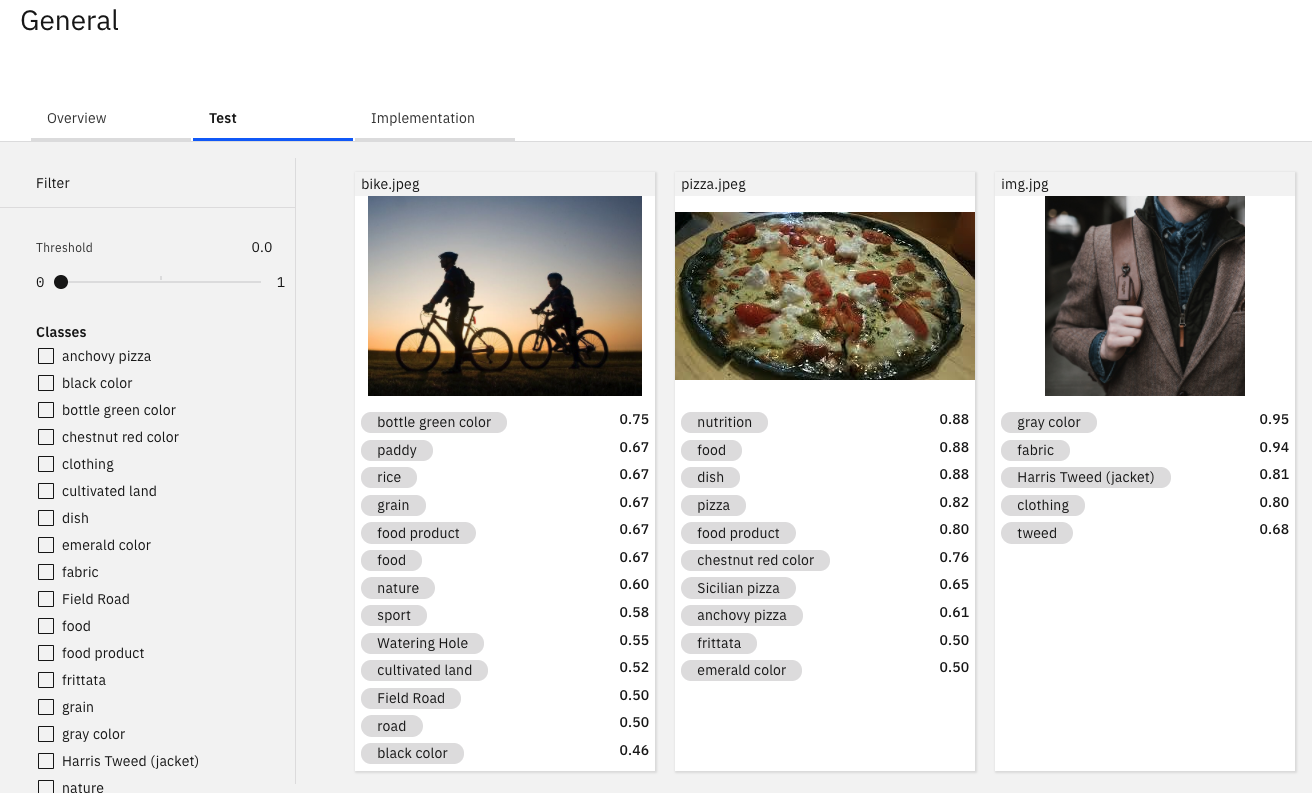앞서 curl로 테스트 했던, General(이미지 분류), Food(음식 분류),