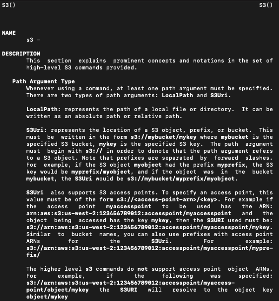 aws s3 help