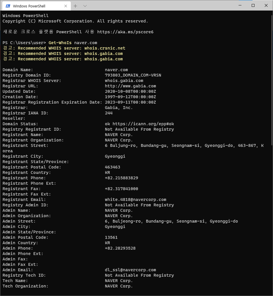 파워쉘로 도메인 정보를 확인할 수 있다.