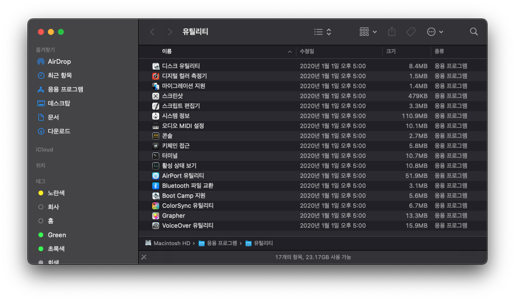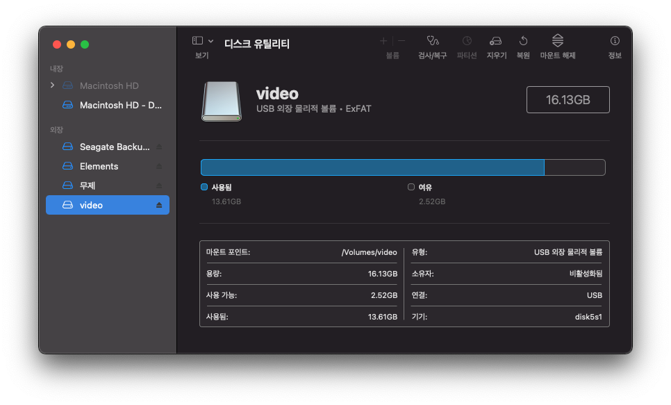 이동 > 유틸리티 > 디스크 유틸리티를 실행하자.