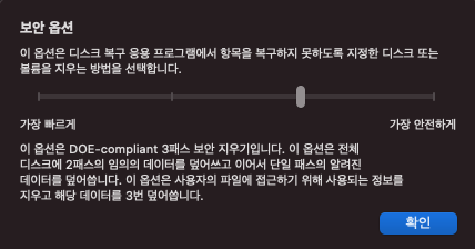 - 안전하게 지우지 않고 복구 프로그램으로 복구 가능