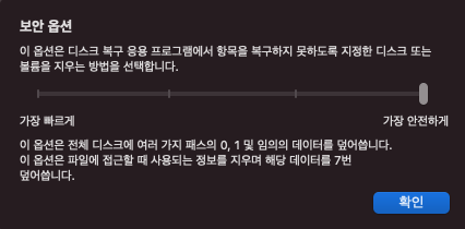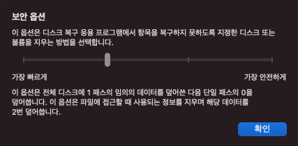 - 1패스의 임의의 데이터를 덮어쓴 다음 단일 패스의 0을 덮어씀.