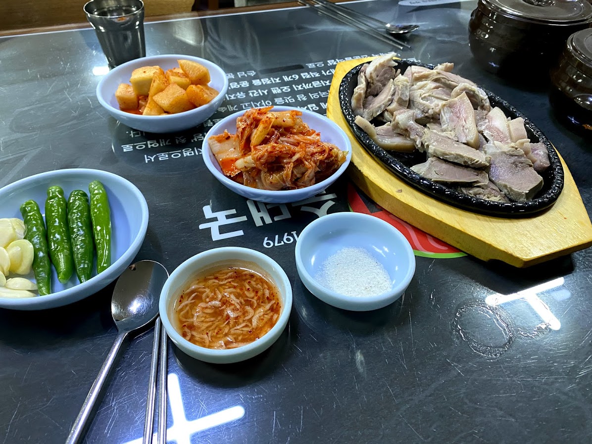 머릿고기와 기본 반찬.