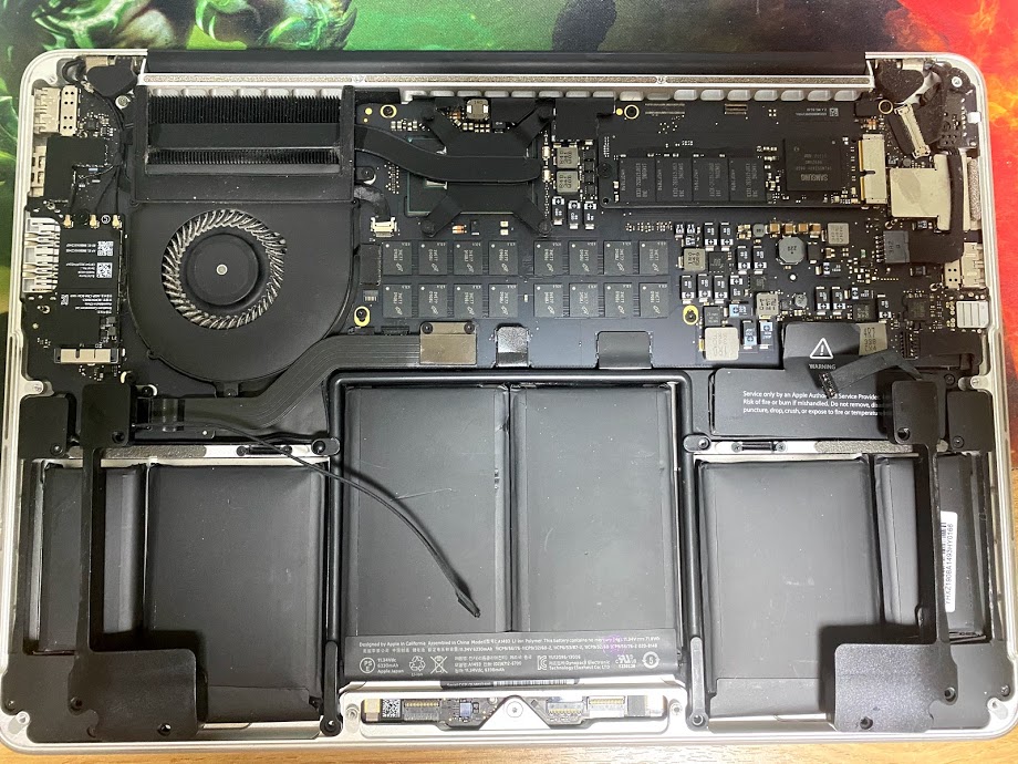 맥북프로 레티나 13인치 13년 LATE 모델이 주력으로 쓰든 컴퓨터인데, 어느순간 보니 뜨겁고 방전 잘되서 도킹에서 빼서 책상에 올려놔보니까 흔들거린다. 사이클은 160정도 였는데. 오래됏으니 배