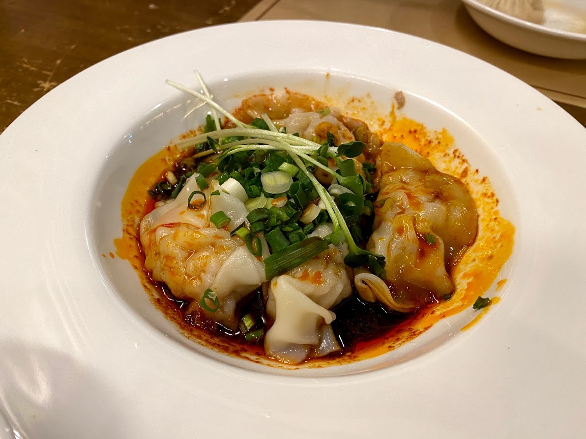 새우가 들어간 훈툰(중국식 만두)에 고추기름 양념이 적혀있는 그것이다.