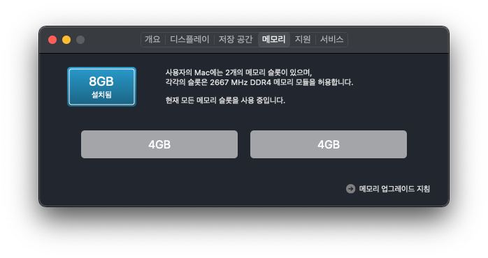 이전에는 램이 4기가씩 2개가 있어서 8기가로 사용중이었다.