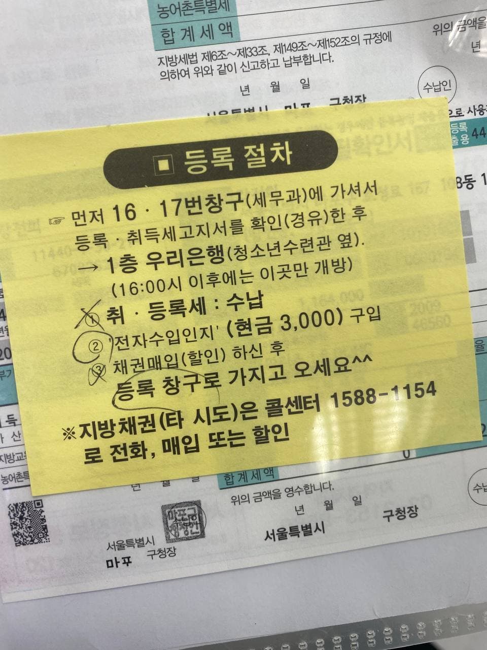 그리고 구청에 있는 은행가서 수입인지 3천원짜리 구매해오면 된다.