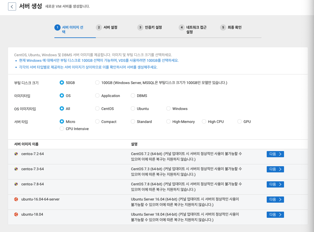 서버 타입을 Micro로 선택하고 서버 이미지를 선택하고 넘어가자.