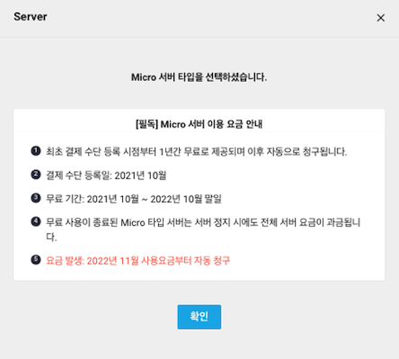 Micro 를 선택했을 경우에는 다음처럼 요금 안내가 뜬다.
