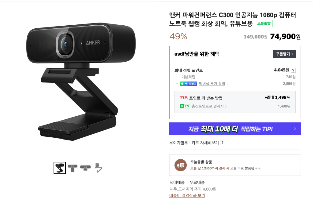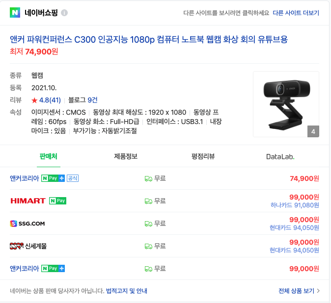 원래는 아마존에서 로지텍 C930 같은걸 봤었는데 아무래도 가격이 있다보니 쉽지 않았다.