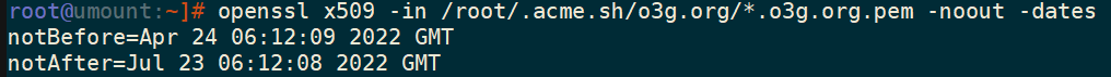 echo | openssl s_client -servername localhost -connect localhost:443 2>/dev/null | openssl x509 -noout -dates
