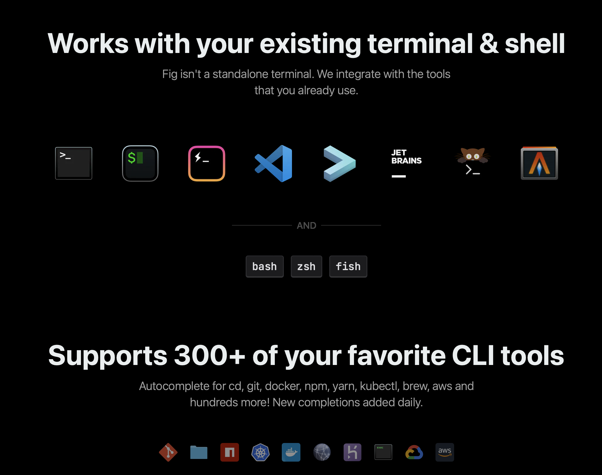 - 이툴은 터미널과 쉘도 자동완성 해주지만 다른 여러 CLI 도구들도 지원한다!