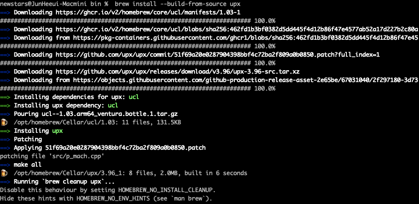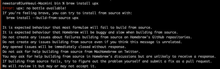 brew 로 upx 를 설치하는데, MAC OS 13 문제인지 잘 안되서