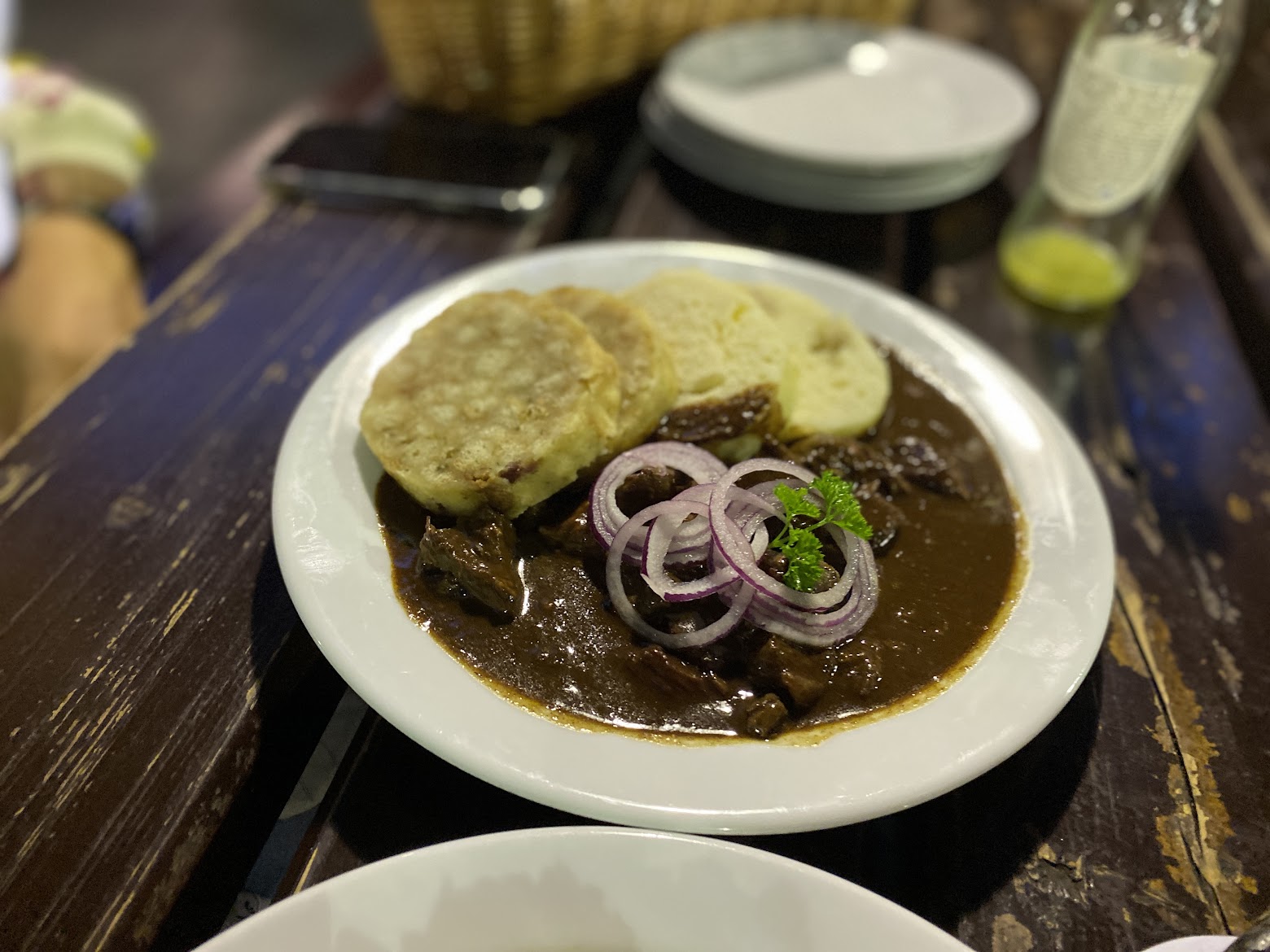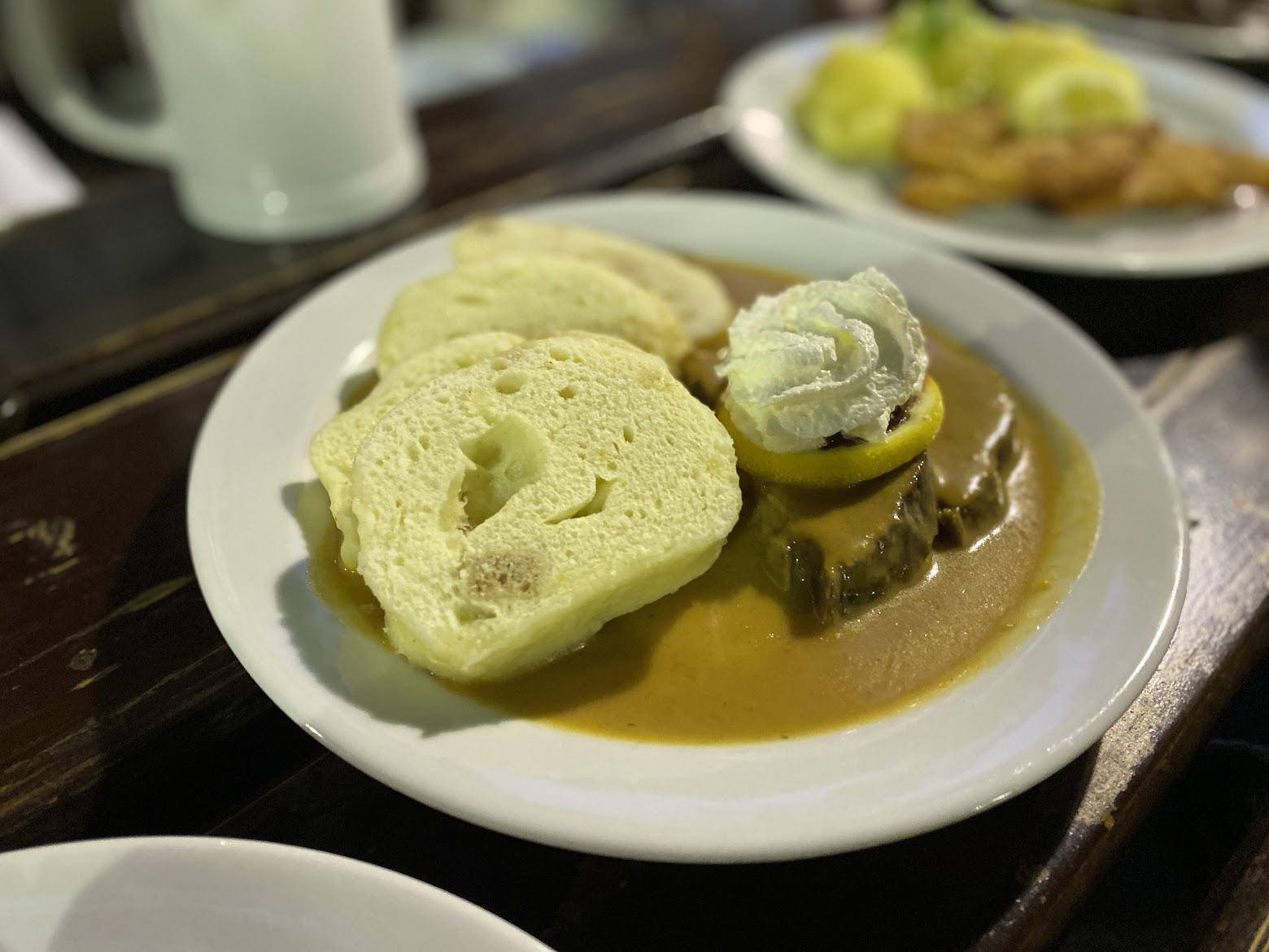 - 크림스프와 함께 소고기를 주는데, 저 같이 주는 빵 크네들리키(Knedliky)를 주는데, 빵이라고 하면 매우 싫어한다.
