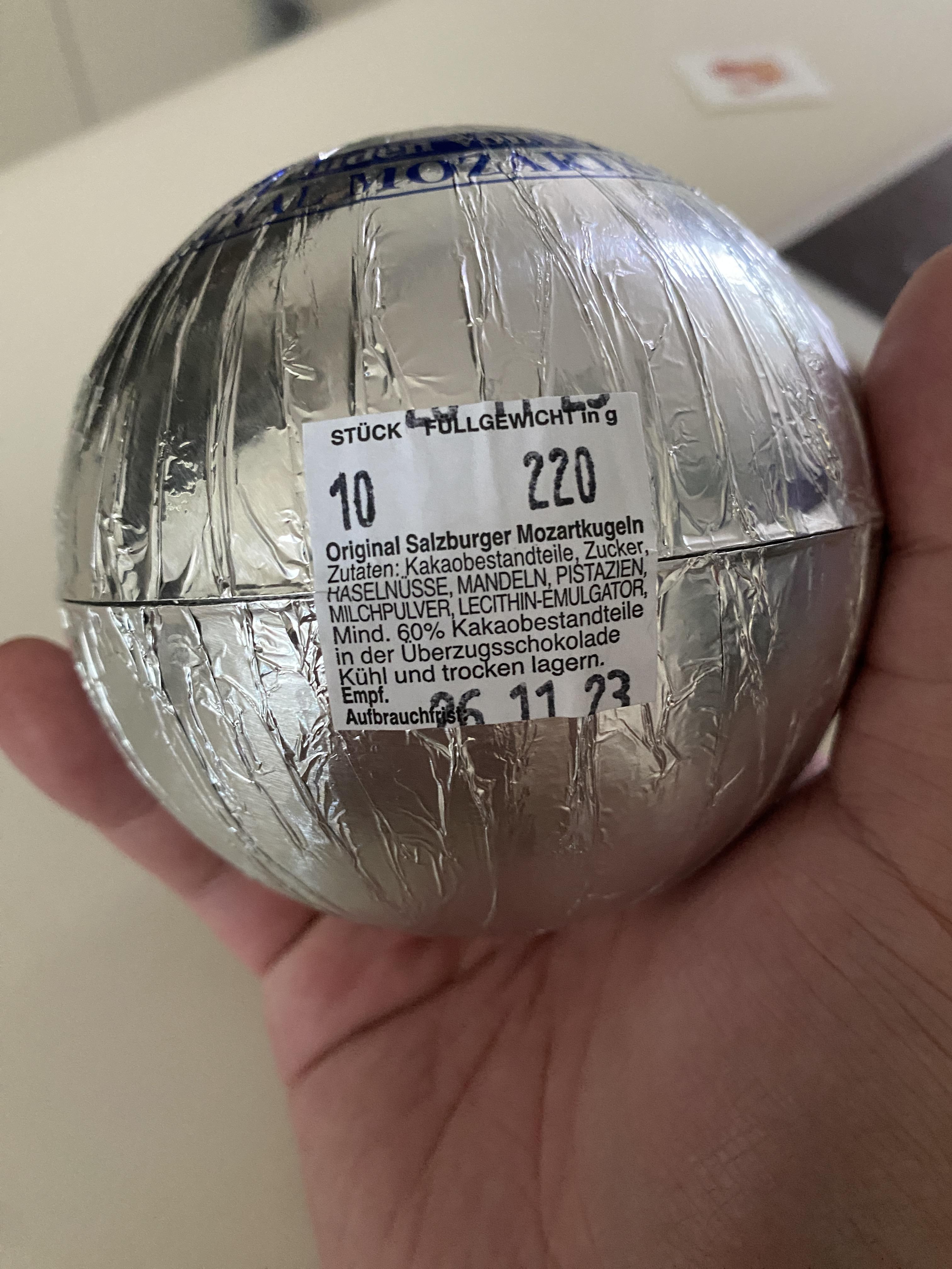 퓌르스트(Fürst) 라는 사람이 만들었으며, 모차르트쿠겔(Mozartkugel)이라고 한다.