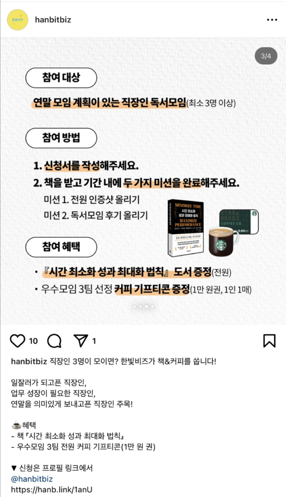 우연히 인스타그램에서 직장인 독서모임 후원 이벤트를 발견했고, 사람들을 급하게 모았다.