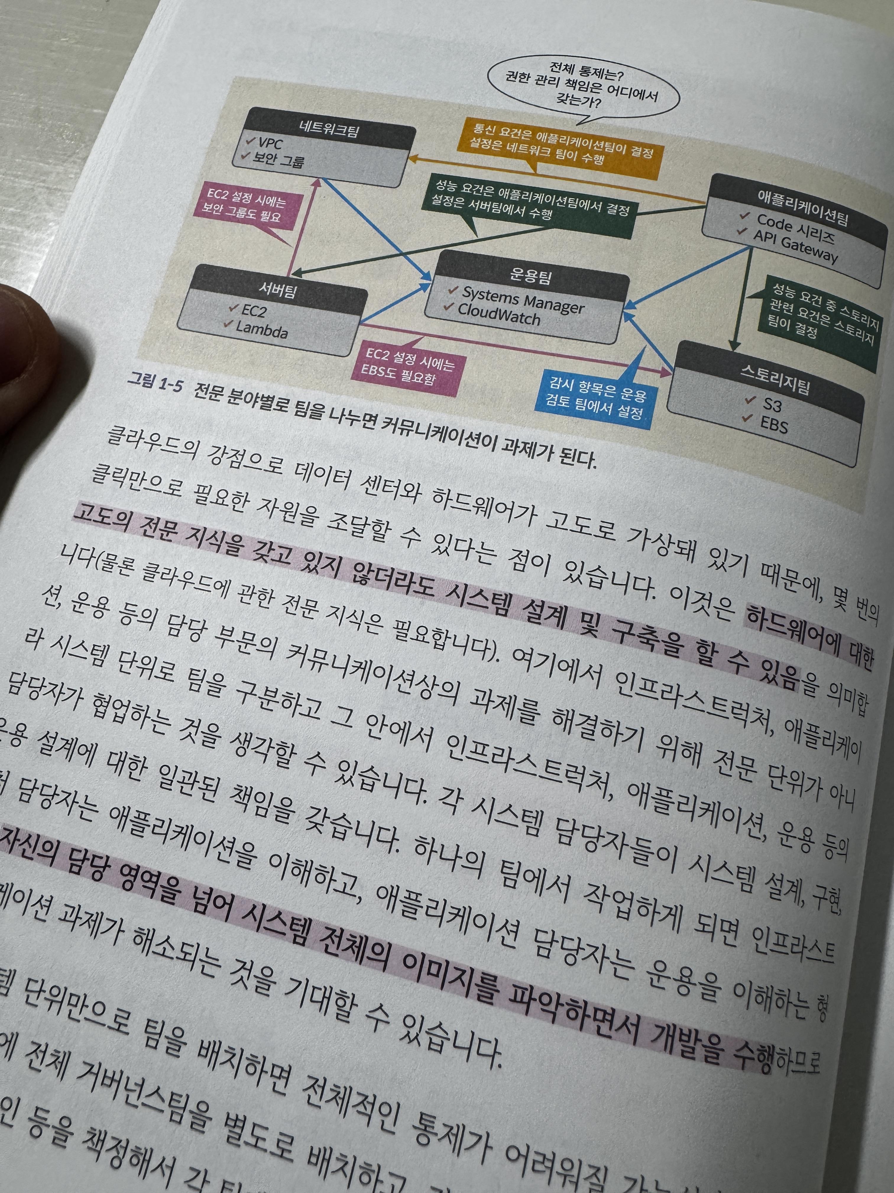 아마 대부분의 회사가 이렇게 구성되어 있지 않을까? 하나의 팀에 프론트/백엔드/인프라/네트워크/DB 등을 다 구성하려면 인력이 많이 필요하게 된다. 그러면 초기 개발하는 회사보다는 운영하는 곳에서 어울리지 않을까? 그런 부분에 대한 부분도 얘기가 나왔으면 더 좋았을 것 같지만, 충분히 중요한 부분이라서 공감됐다.