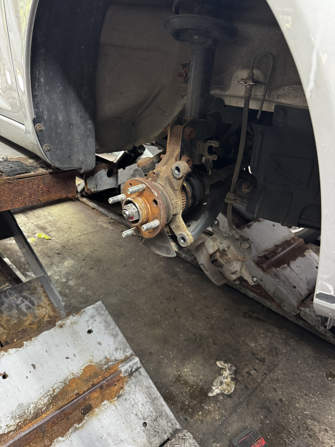 휠과 브레이크 앗세이 탈거 중